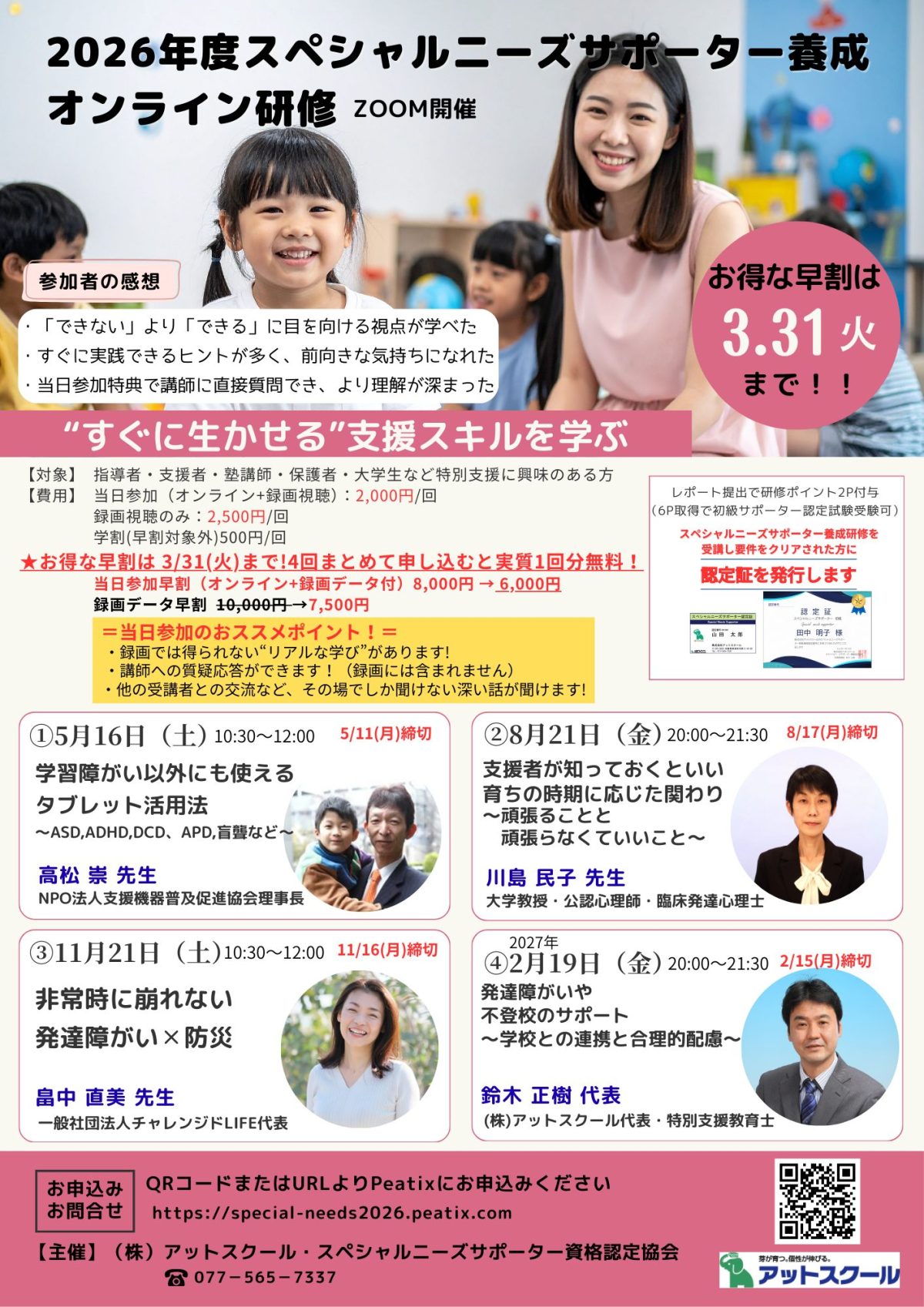 スペシャルニーズサポーター養成研修の先行予約・早割の受付を開始しました!