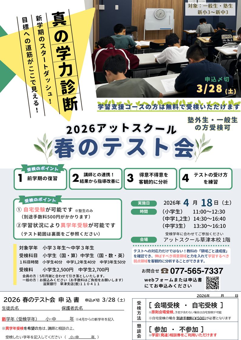 アットスクールで「春のテスト会」を開催します。