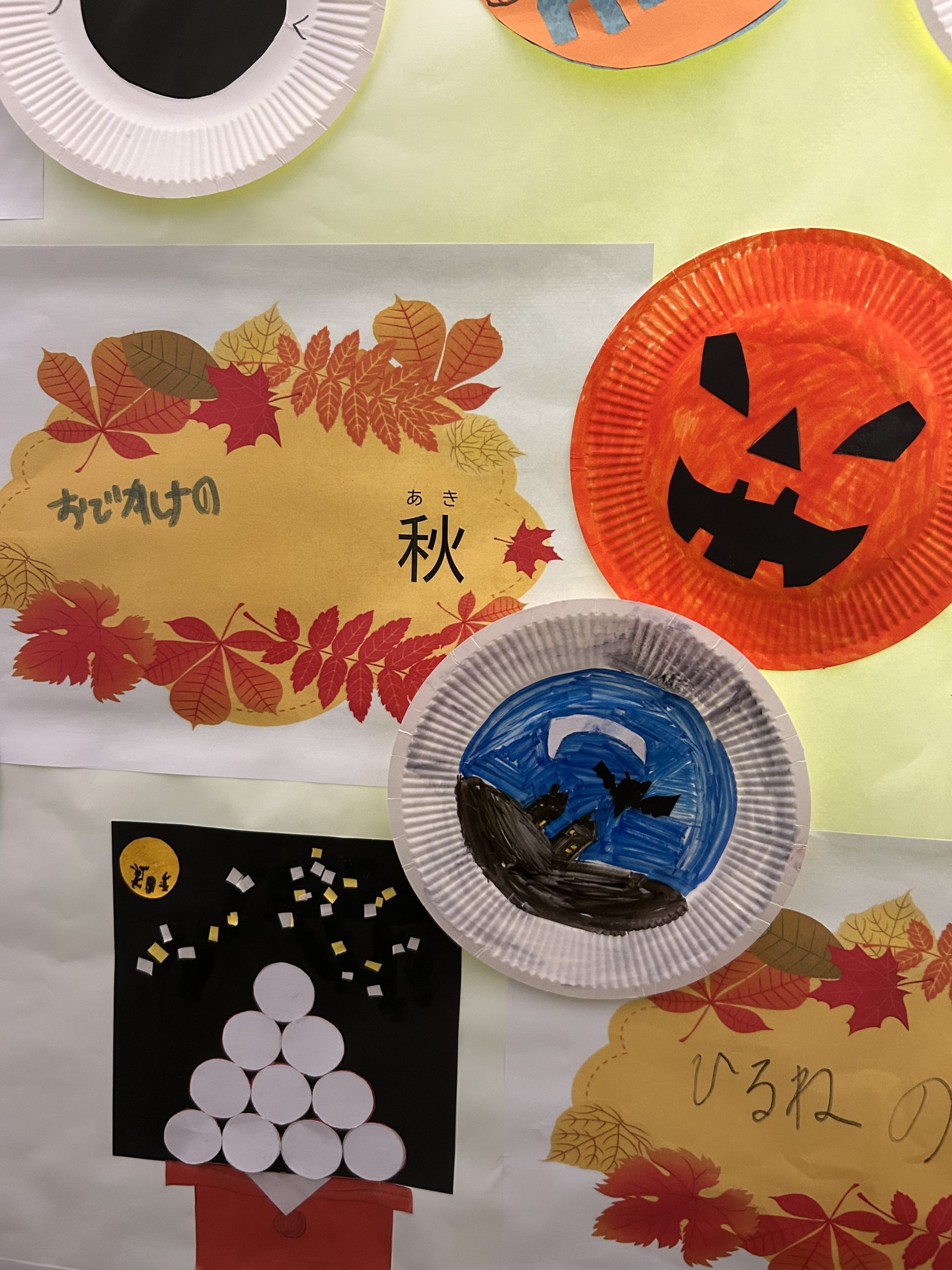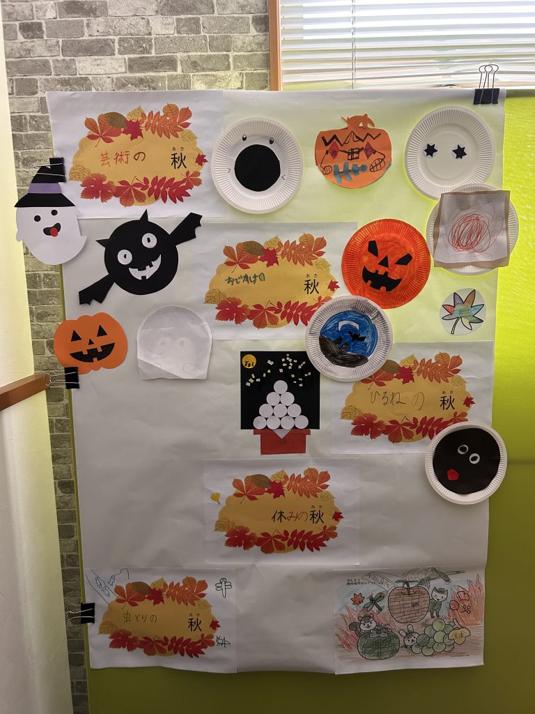 子どもたちと一緒に、ハロウィンの壁紙製作中!