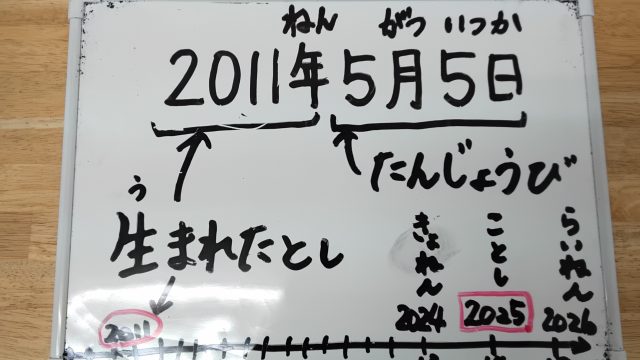 最新ニュース 生活算数って知ってますか? 生年月日は、どんな書類でも記入や入力する必要が人生の中で何度もありますよね?そこで、「生活算数」として、こんなホワイトボードを使用して学んでいます。今後は、生年月日から「賞味期限」につないで学習していく予定です。生きていく上で、必要な数字、... 2025.10.17 最新ニュース