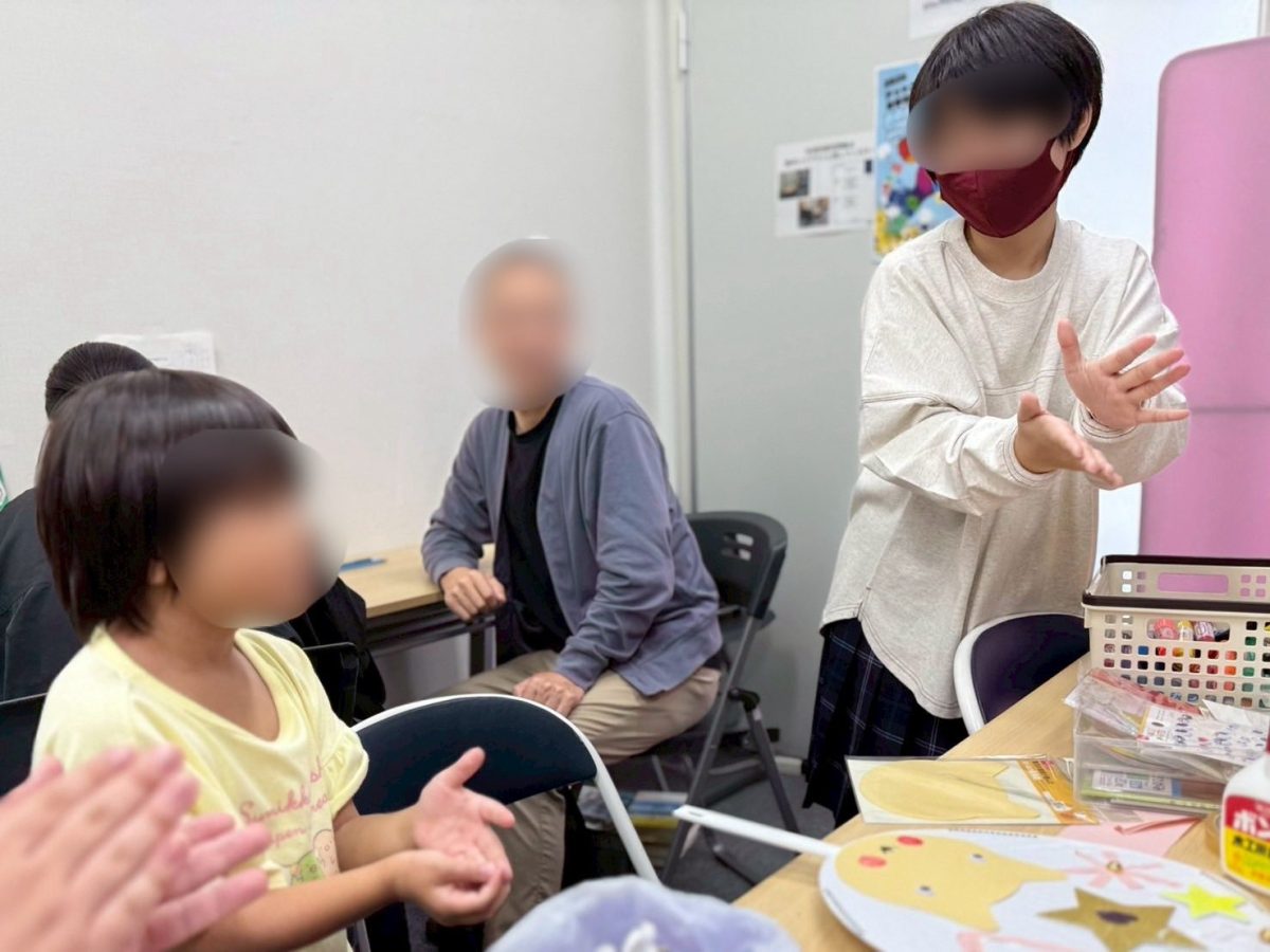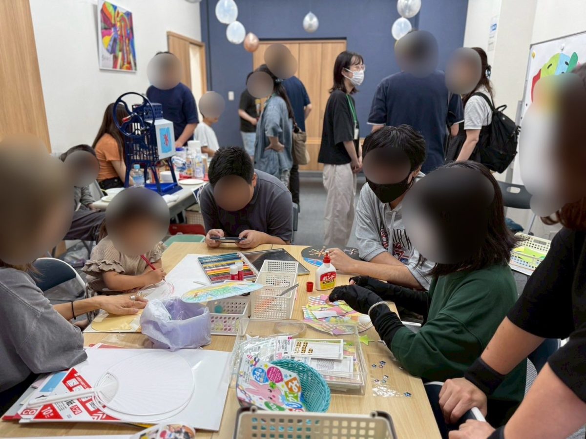 ・オリジナルうちわ作り、プラ板作り うちわやプラ板を創作できるコーナーでは、ペンやシールなどの材料の説明や、描くときの資料をパソコンから探したり描くのを補助したり、快適に過ごしてもらえるような行動ができました。