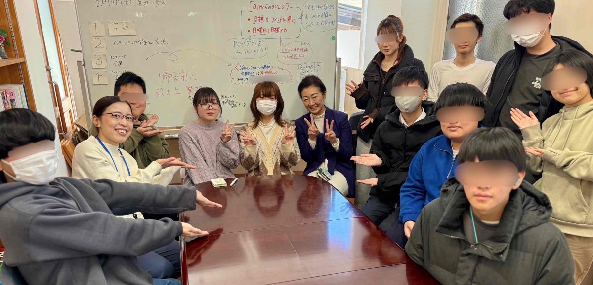 「インターンシップの大学生と交流」