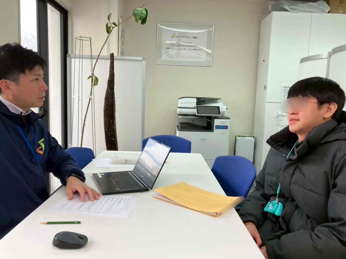 同日後半と先週には振り返りの面談も。自分たちの成長や課題を中村さん、山川さんと丁寧に確認していきました。「来年バイトをしてみたいから、レポートの提出が早くできるようにがんばりたいんです」と就労に向けた自分なりの思いを言葉にする生徒も。