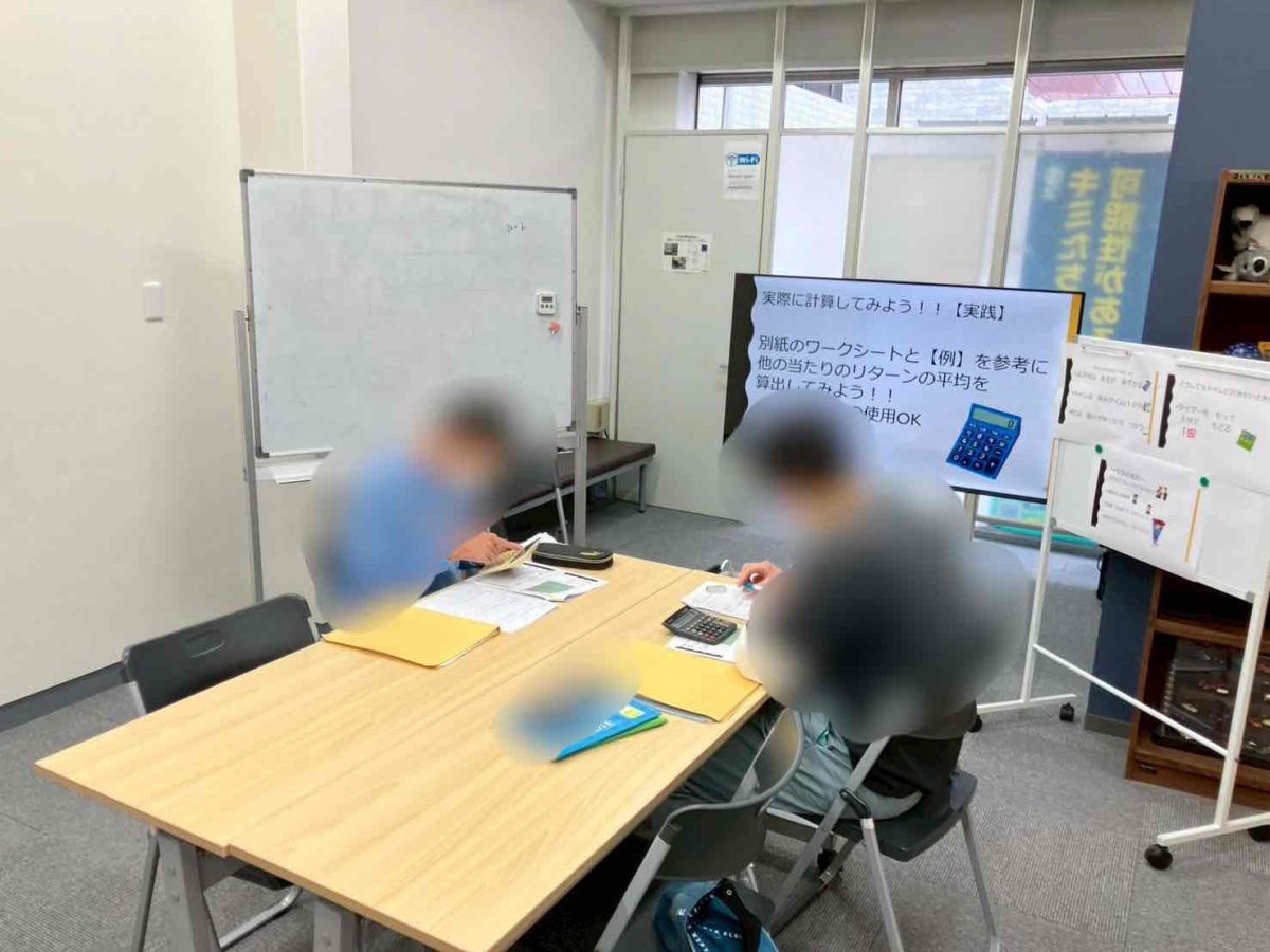 ・リターンの平均値の算出にあたって、桁数の多い計算だったので計算機を使用してもらいましたが、自分で例を参考に式を立てて計算することができていました。