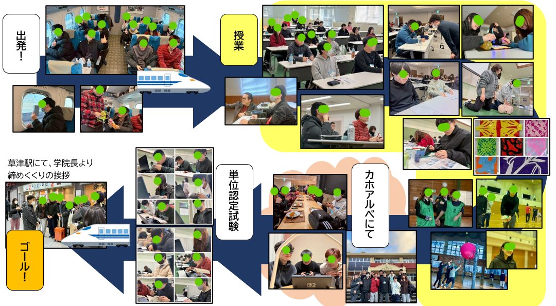 出発から帰りの草津駅まで、誰一人欠かすことなく、全員で完走しました。2回にわたる事前ガイダンス、集団行動練習も兼ねた校外学習、普段の面談から、各自が「自分にはどのような準備、対策が必要か?」を真剣に考えました。